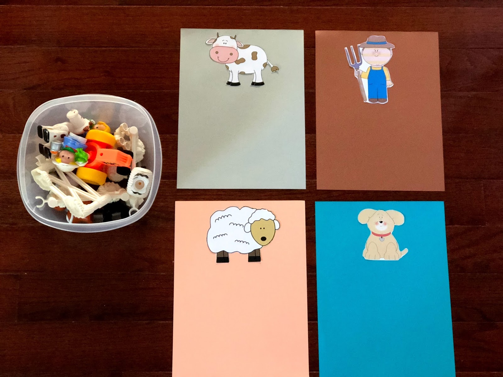 To learn started, nosotros hunted or then the identify for all of our animals. We used Little People farm animals in addition to LEGO DUPLO farm animals.