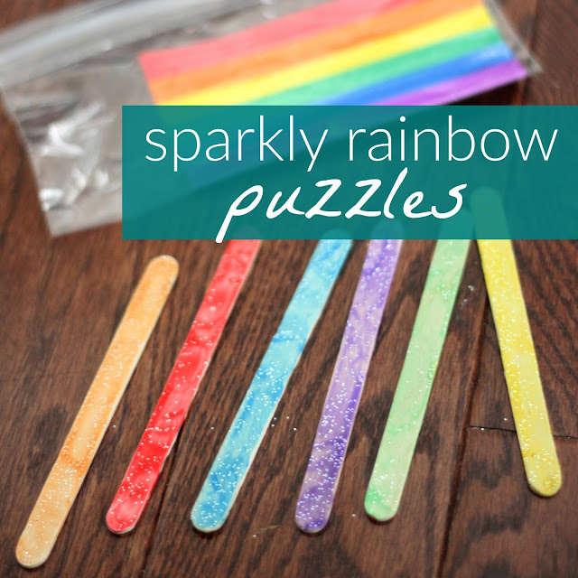 Yesterday nosotros gathered approximately popsicle sticks as well as sparkly pigment to brand approximately rainbow puzzles.